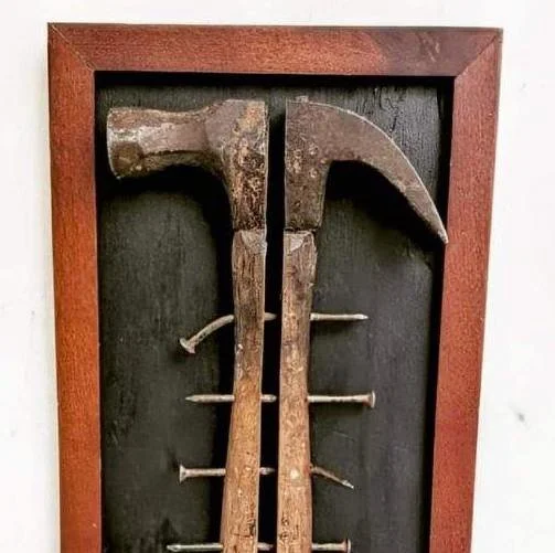 I grew up in LA. Retired, at 50 to become a contractor. One day I made a frame for an ax, in a heart and someone bought it. That was it! I moved up to Wrightwood, about 7 years ago. Got tired of the whole Art Scene in LA. Best move I've ever made. The Art is called assemblage. My overhead is low, because we throw everything away. I've been blessed, to sell quite a few pieces. It's a lifestyle, it's not a hobby. The day I can't make art, is the day I'll leave the Earth.